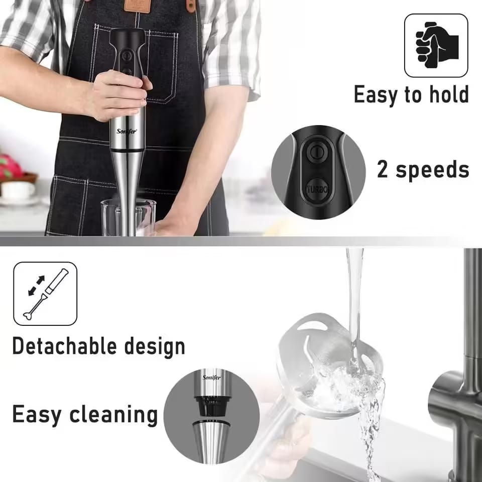 Le Sonifer SF-8013 est un mixeur plongeant multifonction alliant puissance, praticité et élégance. Idéal pour mixer, fouetter et préparer des sauces, purées, smoothies ou soupes en un rien de temps. Conçu en acier inoxydable durable, il assure des performances constantes et un nettoyage facile.