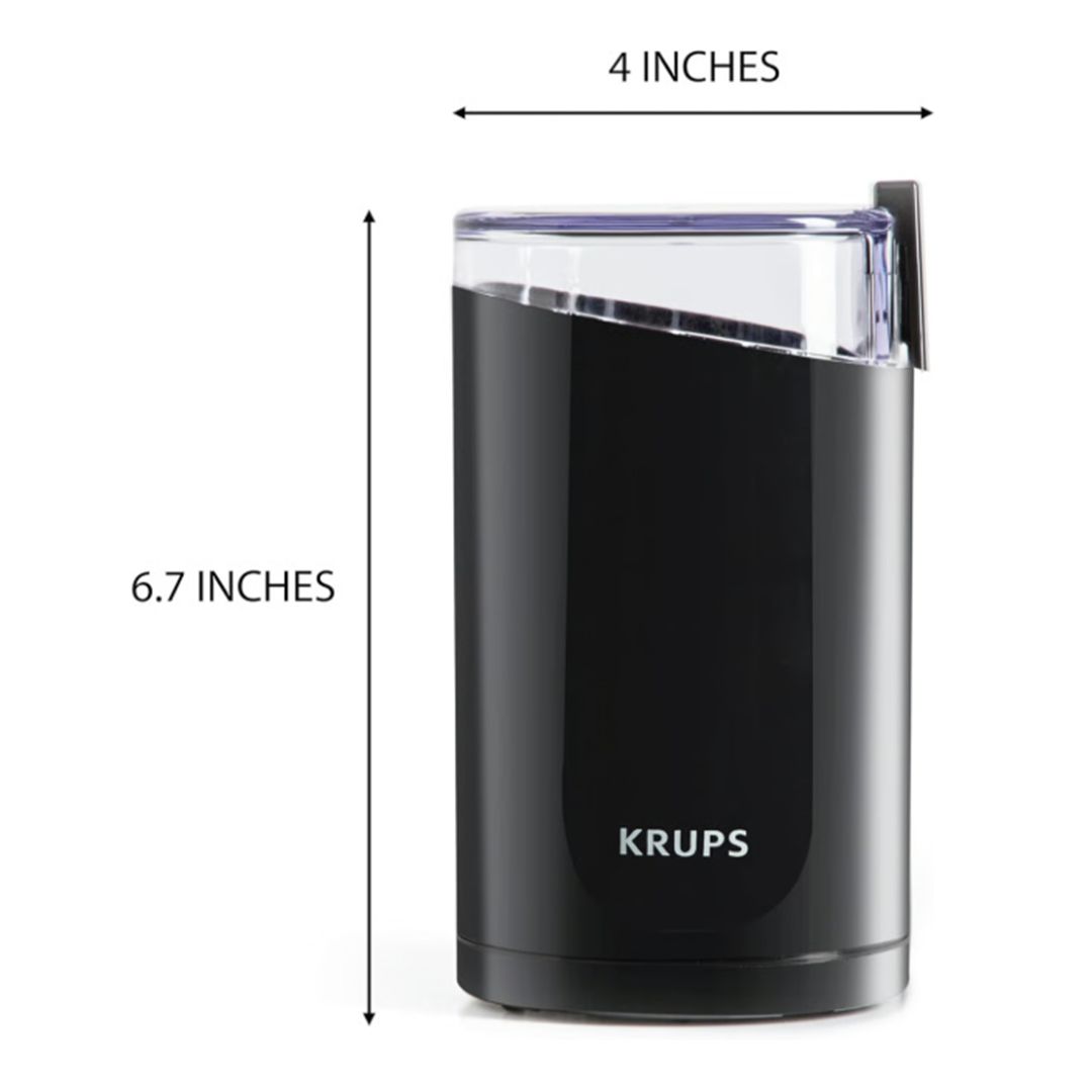 KRUPS MOULIN A CAFE ELECTRIQUE FAST TOUCH F2034210 NOIR - broyeur à grains Puissance : 200W, Capacité du bol : 85 gr, Interrupteur de sécurité intégré , Idéal pour moude du café grain, des graines, épices, fuits à coque...., Le couvercle passe au lave vaisselle. Un moteur puissant de 200 w pour moudre rapidement sans échauffement, préservant ainsi tout l'arôme du café. Vous apprécierez sa forme en élipse qui vous permettra de verser facilement votre mouture.