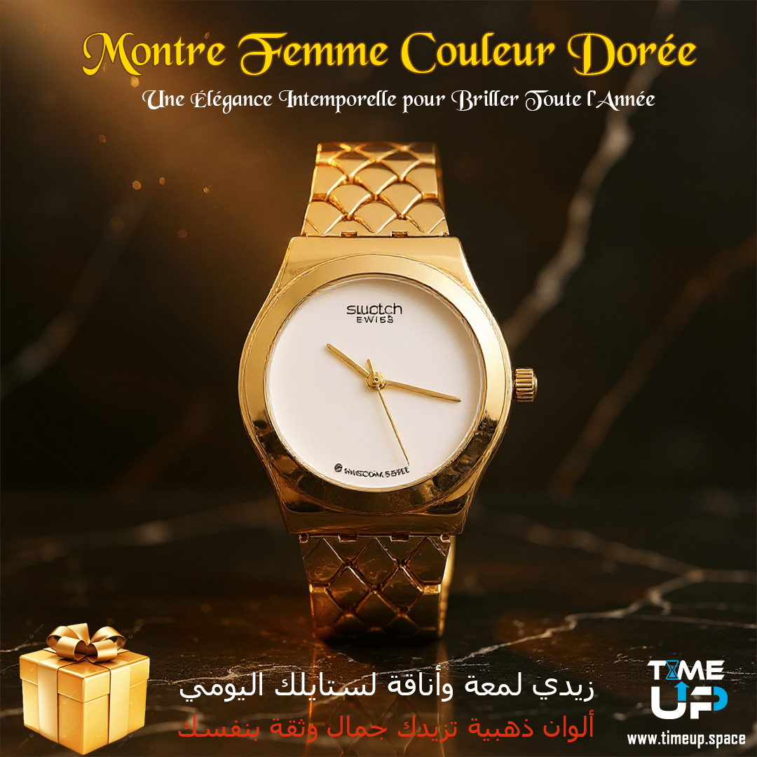 Ajoutez une touche de raffinement à votre style avec cette montre femme couleur dorée, pensée pour sublimer chaque tenue avec élégance et simplicité. Son design épuré et sa finition lumineuse en font un accessoire indispensable pour les femmes qui recherchent à la fois classe, modernité et confort au quotidien.