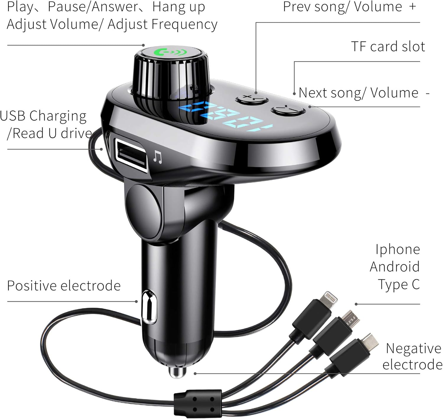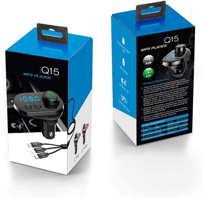 Le Kit de Lecteur MP3 pour Voiture Q15 offre une transmission Bluetooth sans fil, une compatibilité universelle, des appels mains libres, des chargeurs multi-types intégrés, et un design élégant avec écran LED pour une expérience de conduite améliorée.