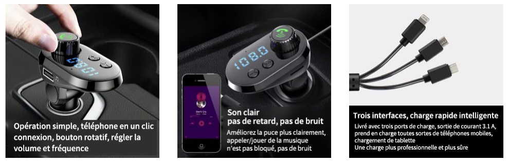 Modèle approprié: l’adaptateur de voiture Bluetooth est compatible avec presque tous les appareils compatibles Bluetooth, y compris les téléphones mobiles, les tablettes, les ordinateurs portables et les lecteurs MP3.