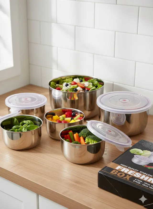Gardez vos aliments frais plus longtemps avec les Freshness Box en acier inoxydable de haute qualité.